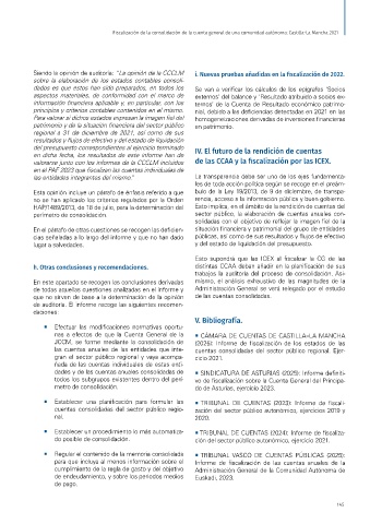 valorarse junto con los informes de la CCCLM incluidos de las CCAA y la fiscalización por las ICEX.
