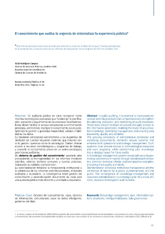 Resumen: En auditoría pública es clave incorporar herra- Abstract: In public auditing, it is essential to incorporate ad-