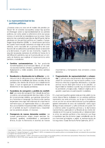 1 Verge Maestre. T. (2006): ¿Crisis de los partidos en España? una revisión crítica. Revista de Investigaciones Políticas y Sociológicas, vol. 5, núm. 1, pp. 105-127